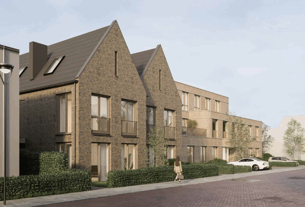Grenzend aan het complex verrijzen daarnaast twee grondgebonden woningen, en aan het mandelige binnenhof komen nog eens zes rijwoningen. Hier komt nieuwbouw en herbouw samen in een passende architectuur.